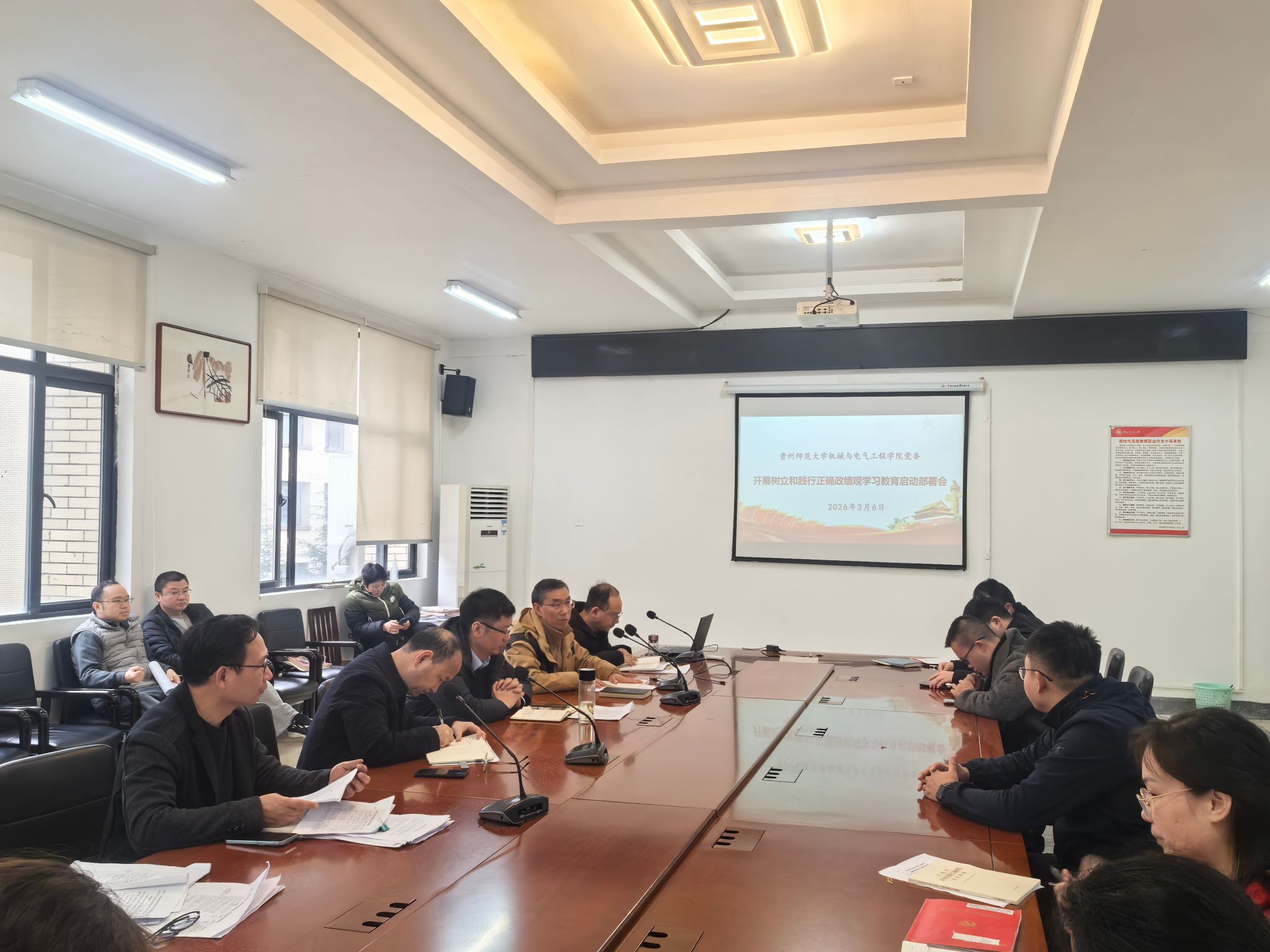 3月6日下午,机械与电气学院召开党委(扩大)会议,安排部署开展树立和践行正确政绩观学习教育。学院党委班子成员、全体党支部书记、科级干部代表参会,学院党委书记郑继明主持会议并讲话。